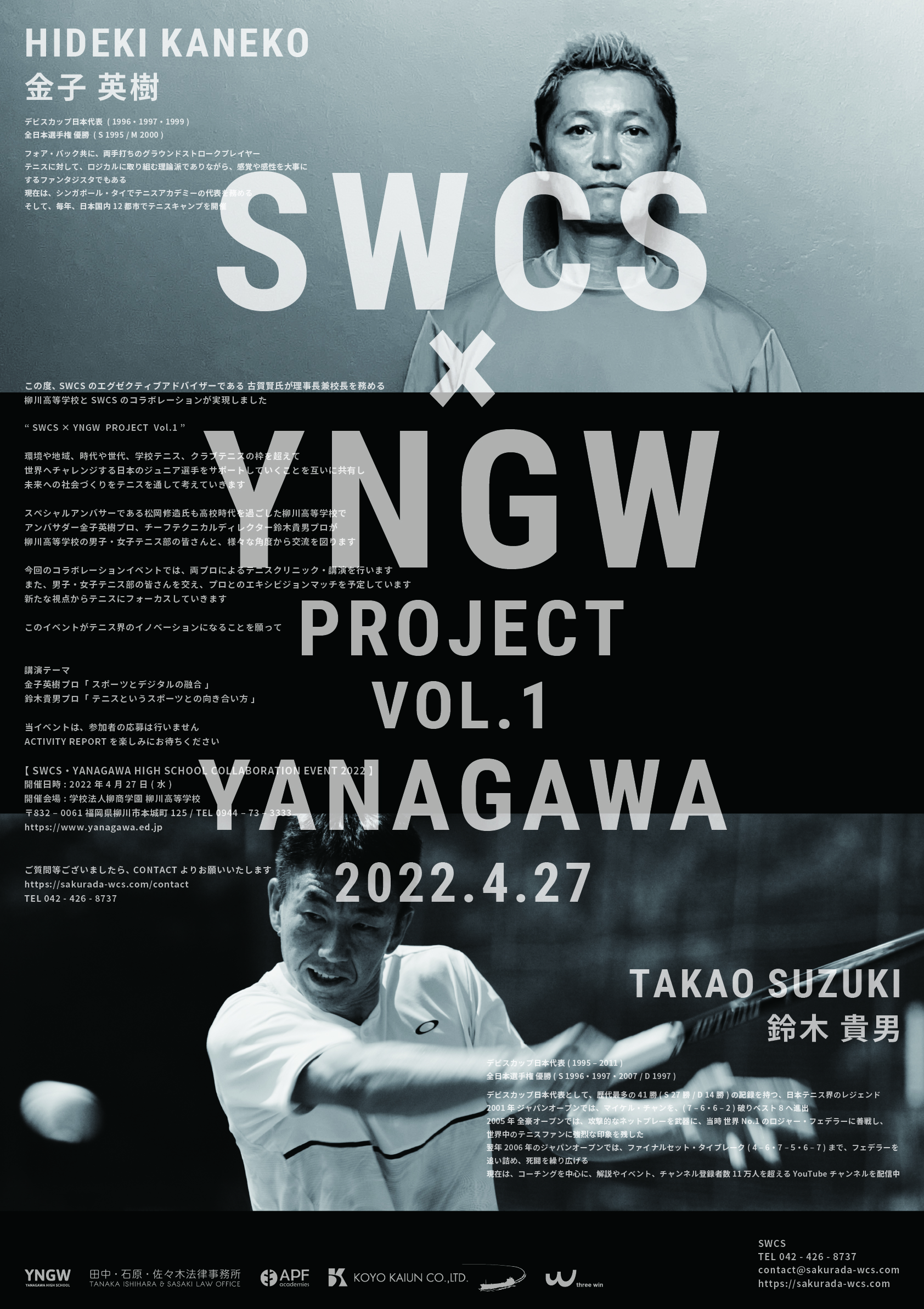 今回の “ SWCS × YNGW PROJECT ” では、金子英樹・鈴木貴男プロによるテニスクリニック及び、講演を行います。
